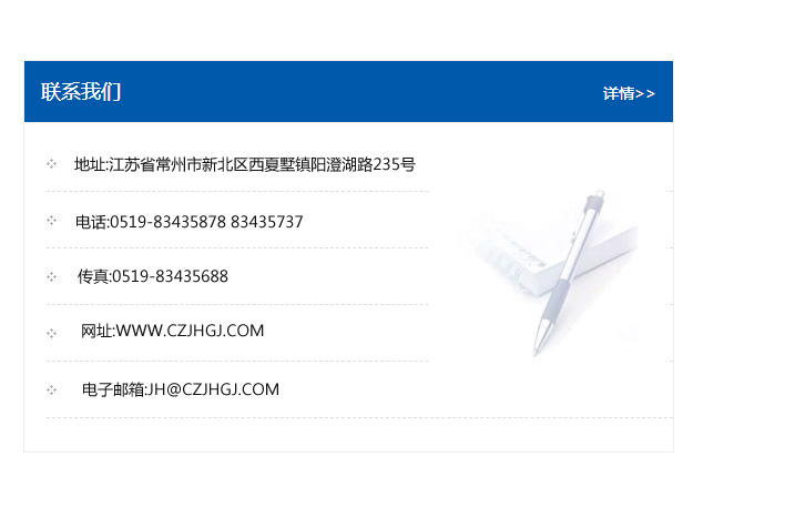 地址:常州市新北區友邦商務大廈1幢16、17層  電話:0519-85101652  傳真:0519-85112595  郵編:213022  網址:www.cz-jiayue_cn.52lqduo.com  郵箱:xiajifengaa@163.com